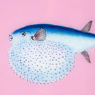 Scout exclusive pastel fish artwork. UV printed on acrylic film with a black and gold frame.
