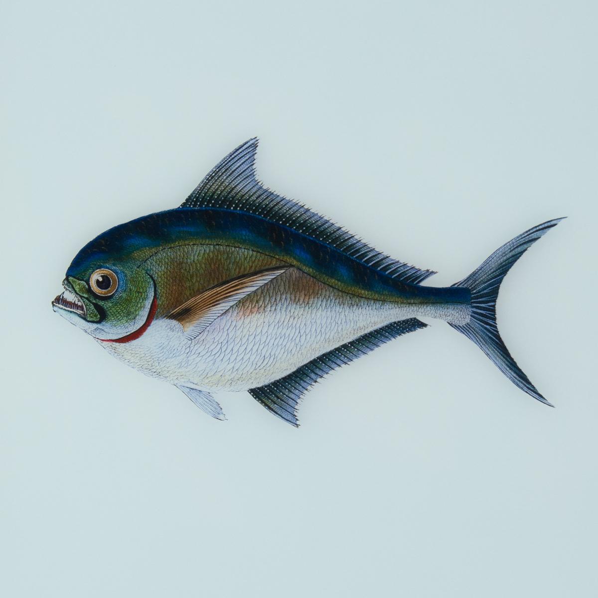 Scout exclusive pastel fish artwork. UV printed on acrylic film with a black and gold frame.
