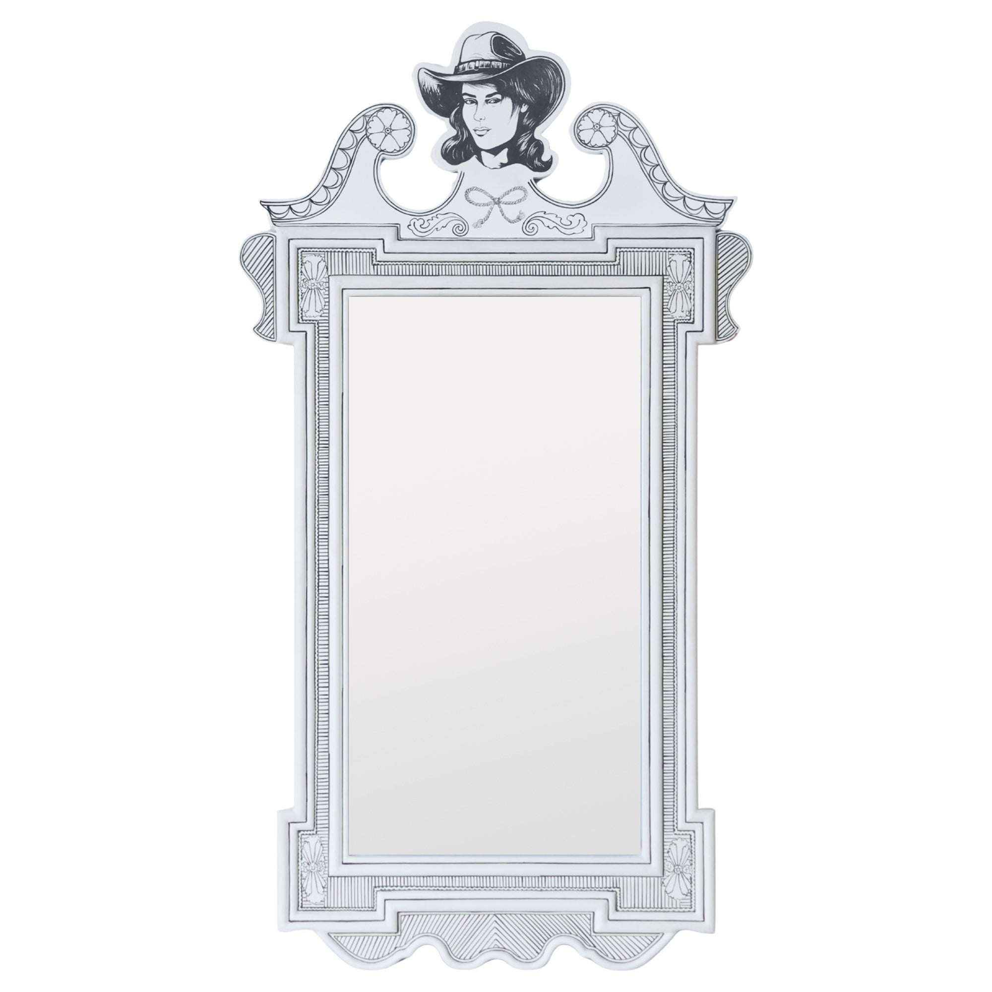 Hand-painted in white and black, she’s equal parts Western flair and refined drama. Scrollwork curves, Deco edges, and her signature hat silhouette give her selfie-worthy energy in any space.