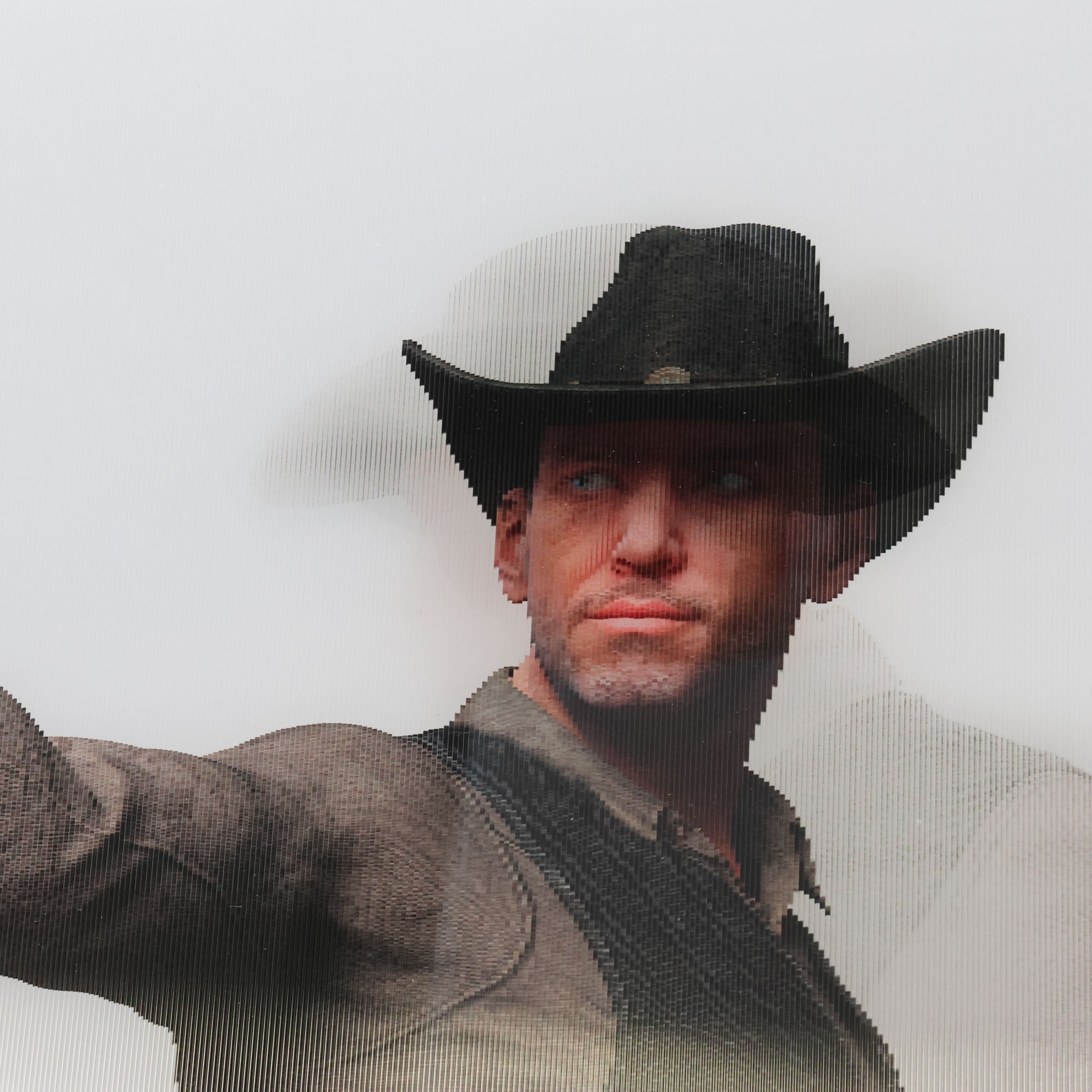 Depicting a cowboy in motion, ‘On the Range' features lenticular printing technology that creates the illusion of movement and depth when the viewer looks from different vantage points. You've got to see it to believe it! Fabulously sized to make a statement, this piece is ready for a moment.