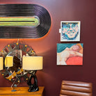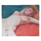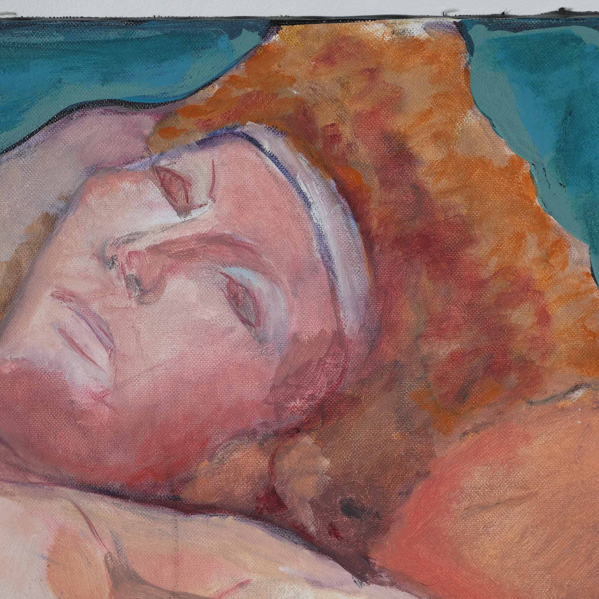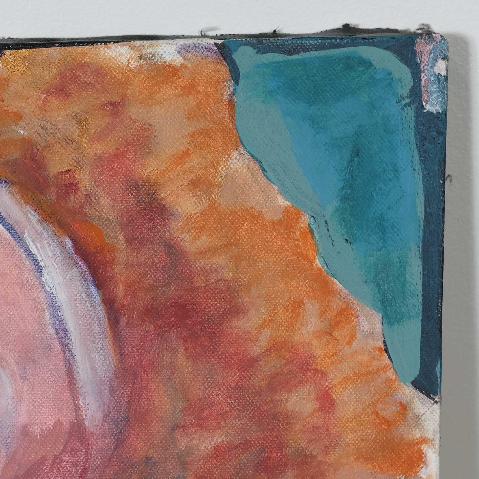 This original nude painting in rich jewel tones will add color and painterly detail to your wall. We love the way the layered colors in this piece pop against the deep azure background.
