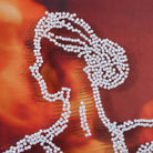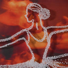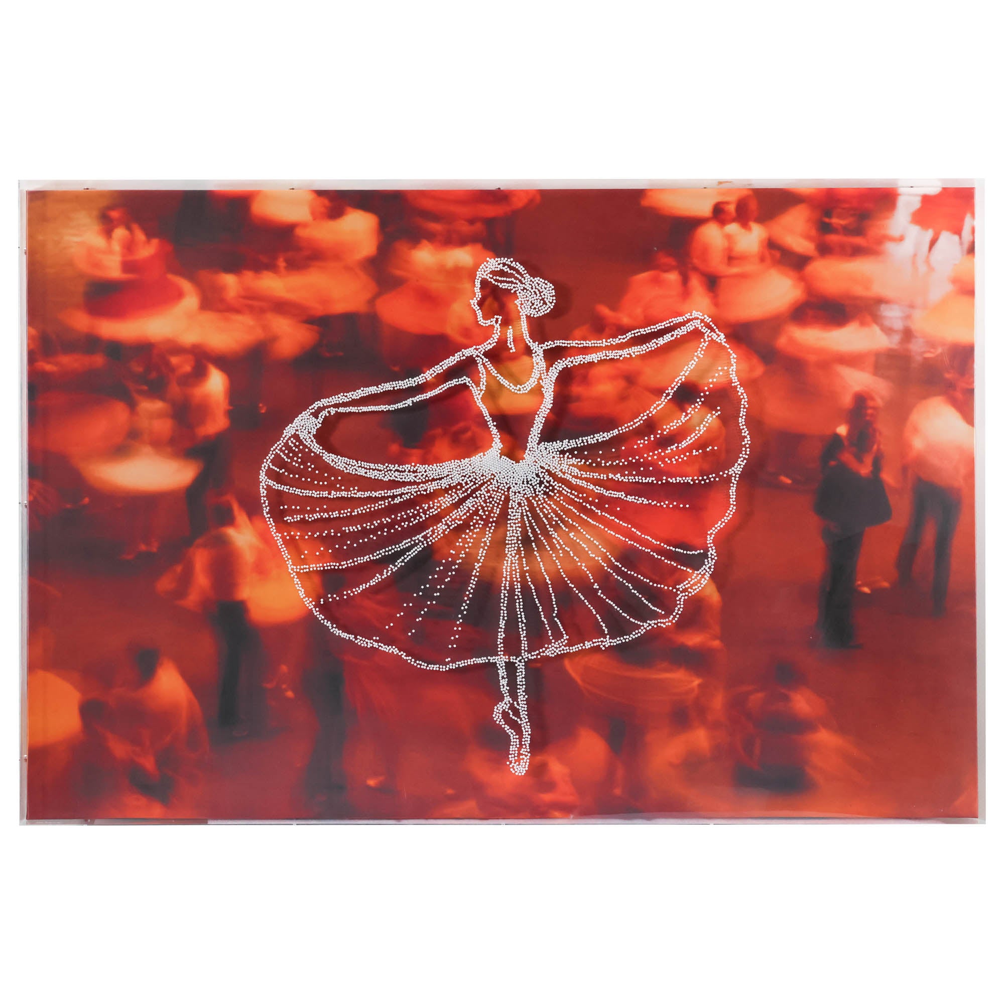 Pirouette in Pins features hand-placed ivory pearl pins on canvas forming a ballet dancer en pointe. Framed in an acrylic shadowbox.