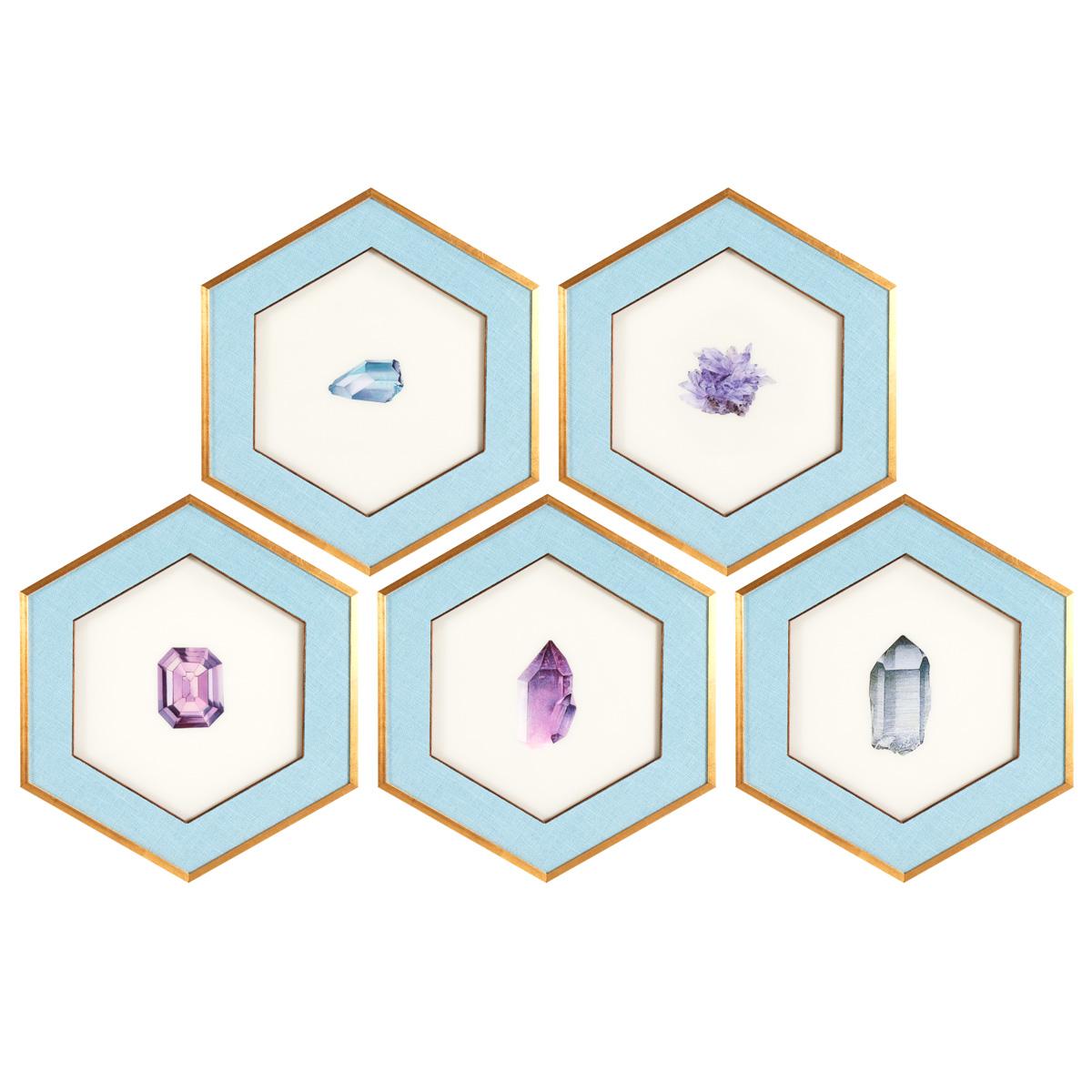 Combine it however you please. Our purple gemstone set of Hexagon art comes with five pieces to arrange.