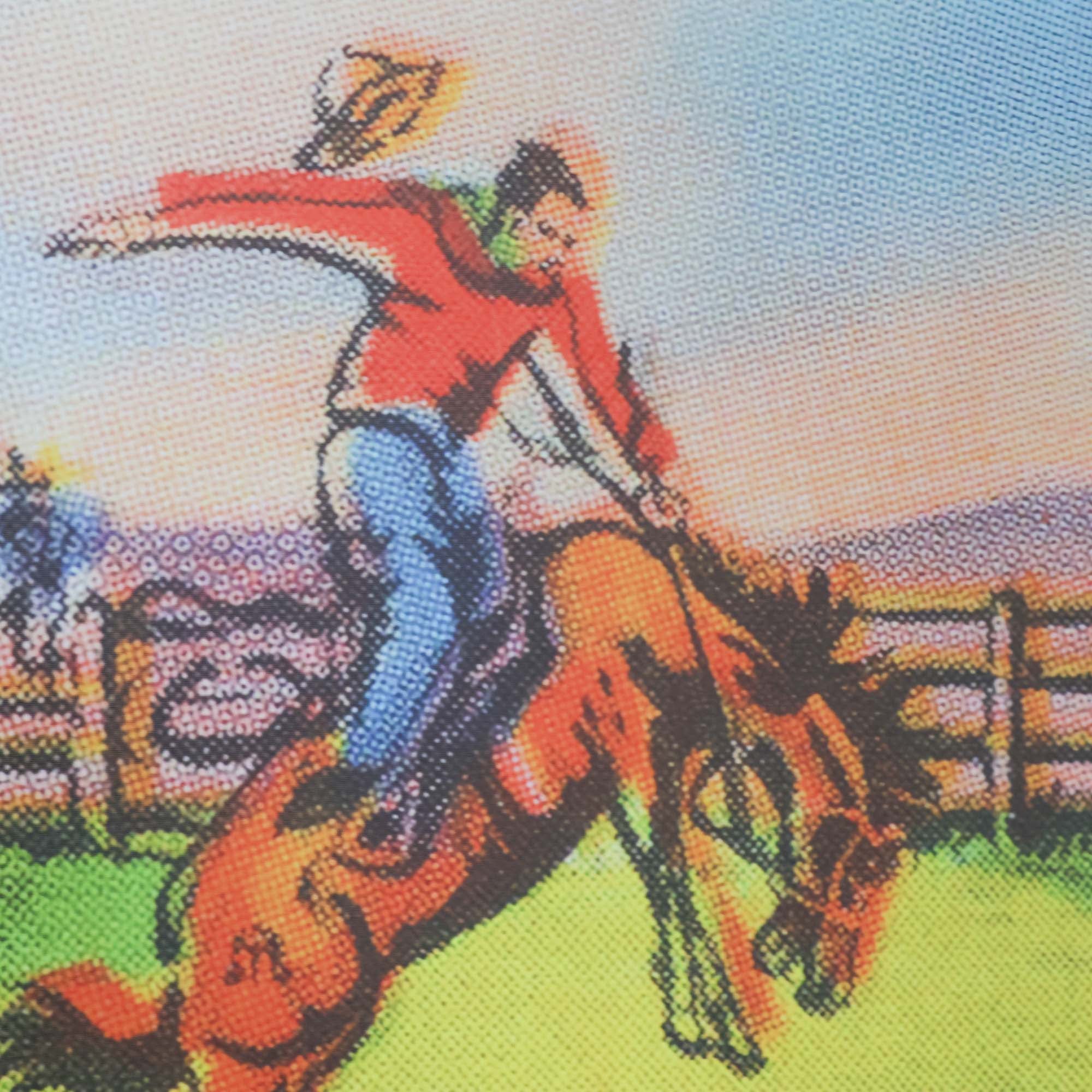 Add some western charm to your space with this pop art style print of a cowboy on a bucking horse. Fun, free-spirited, and reminiscent of the wild west—just what you need.