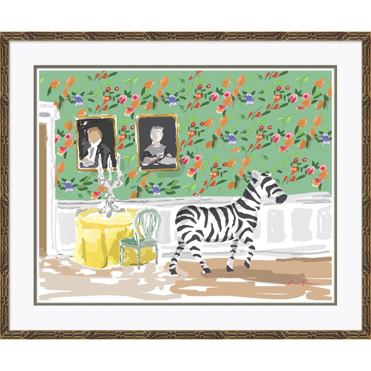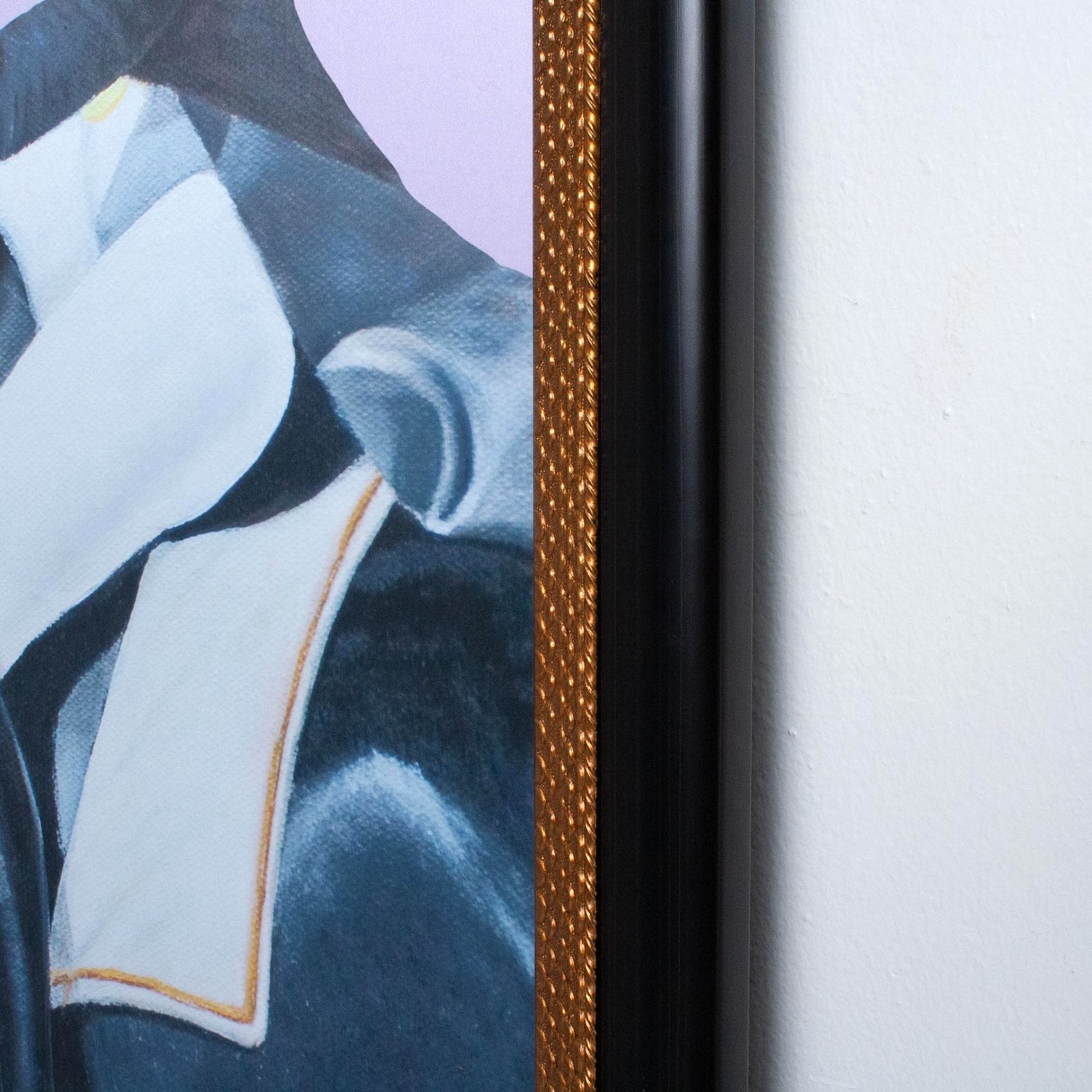 Framed Equestrian Artwork on Silk Cloth - Lavender