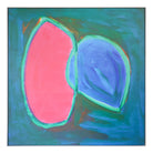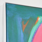 This mesmerizing, abstract dreamscape blends shades of blue, green, pink, and orange in a dance of shape and texture.