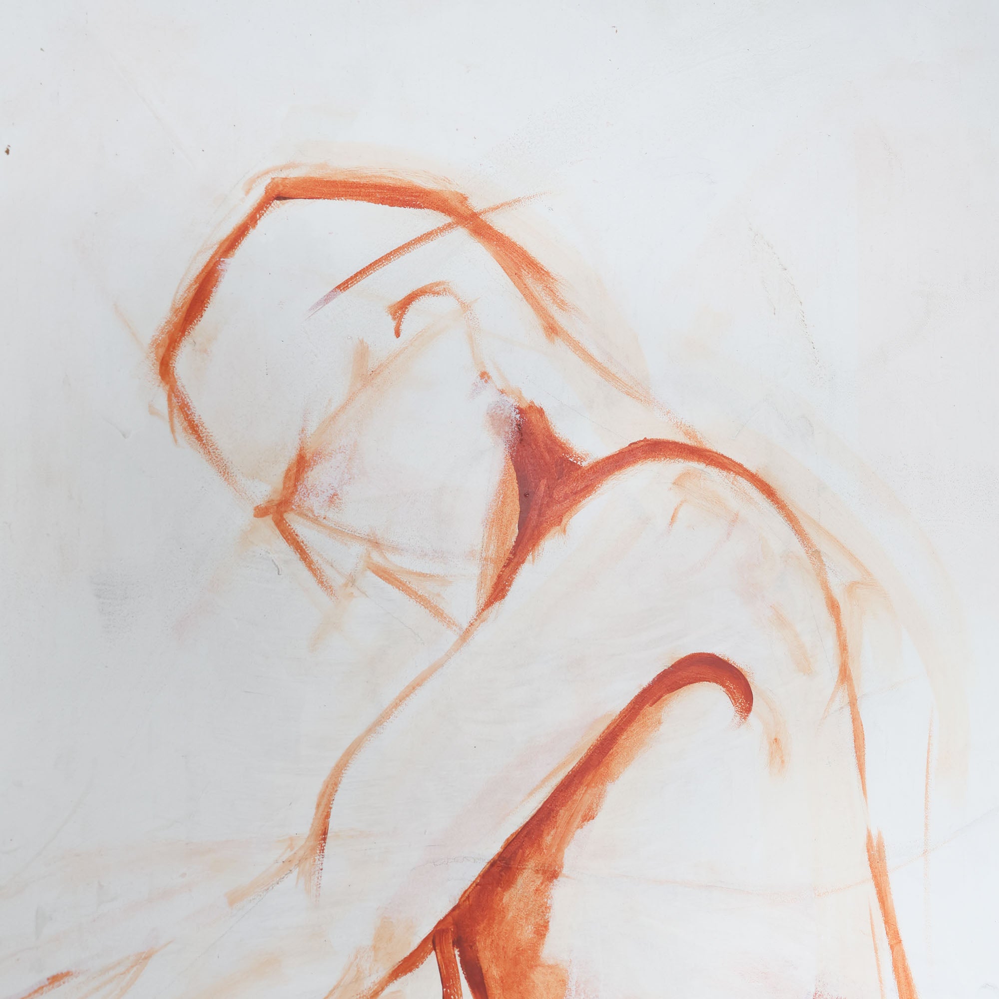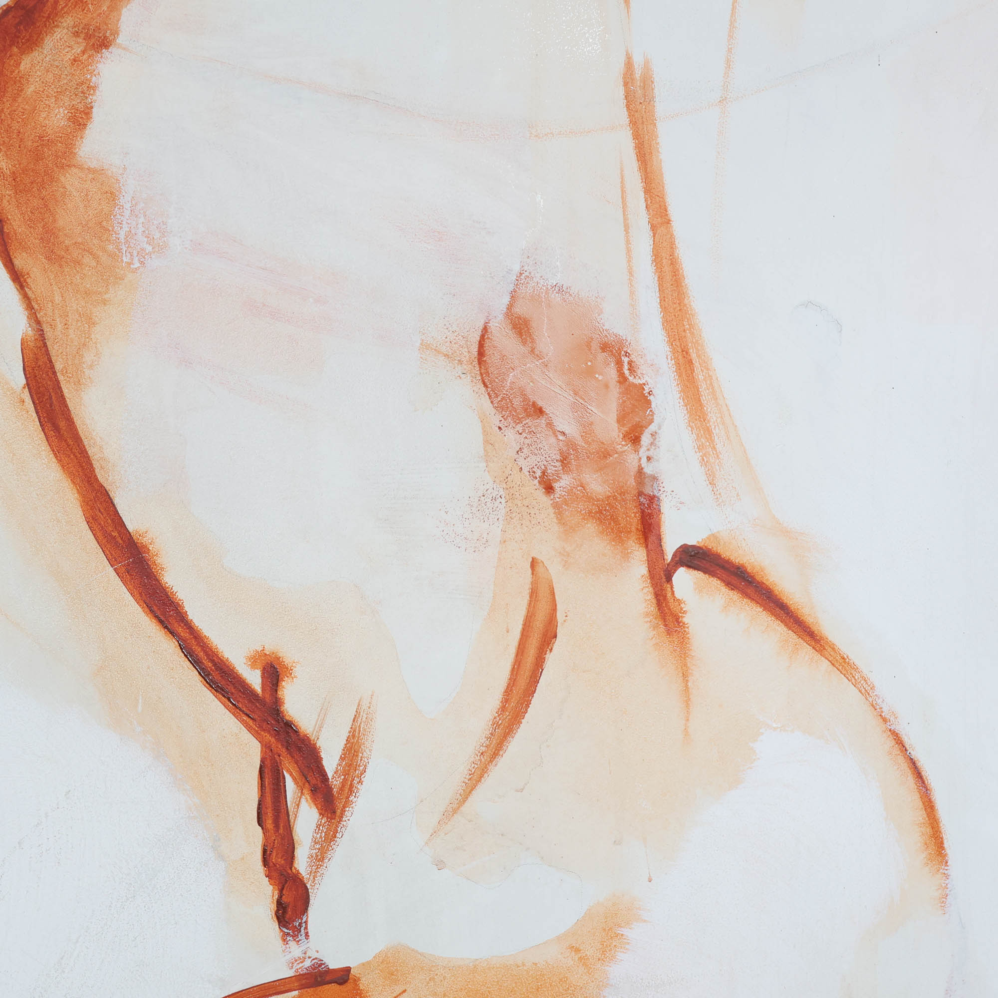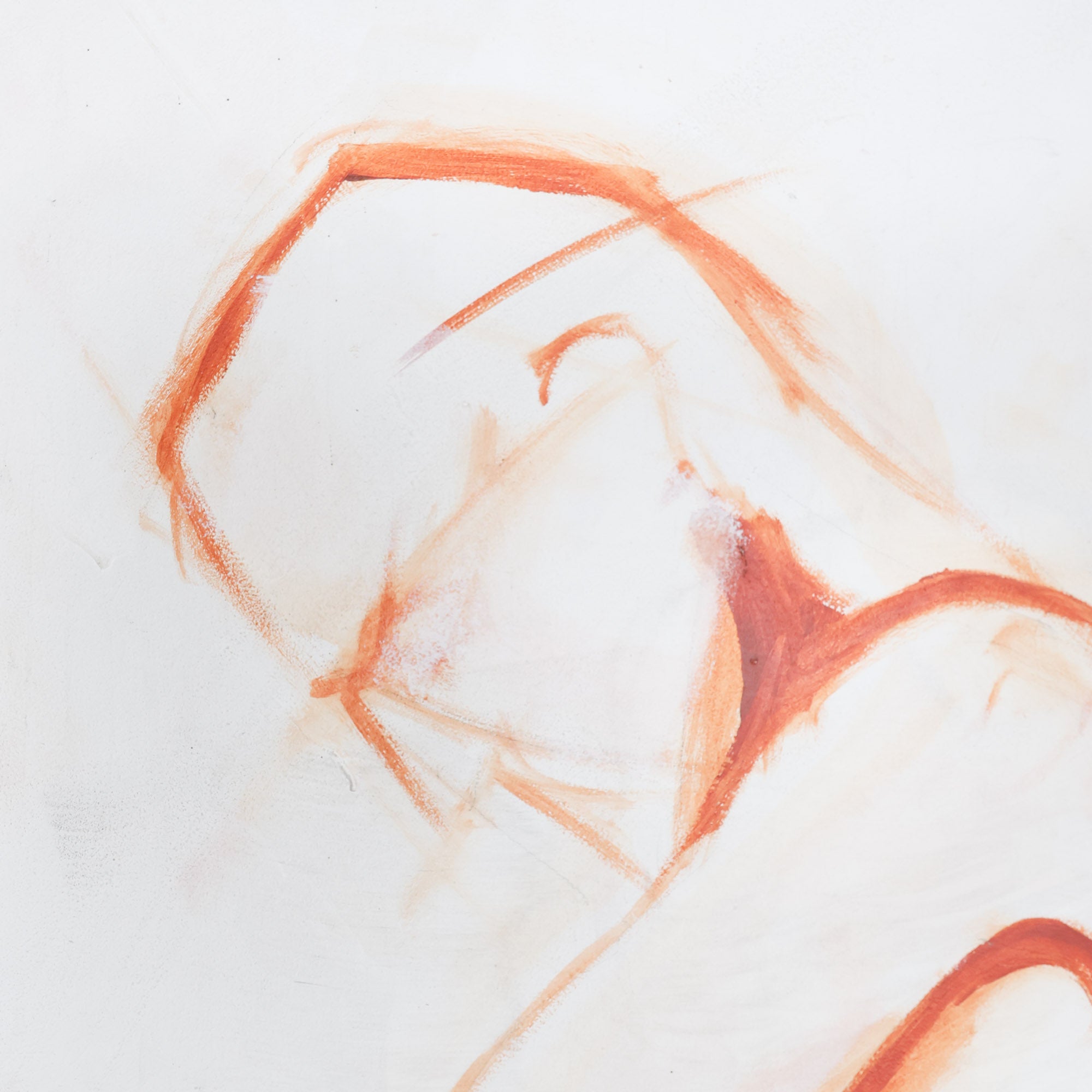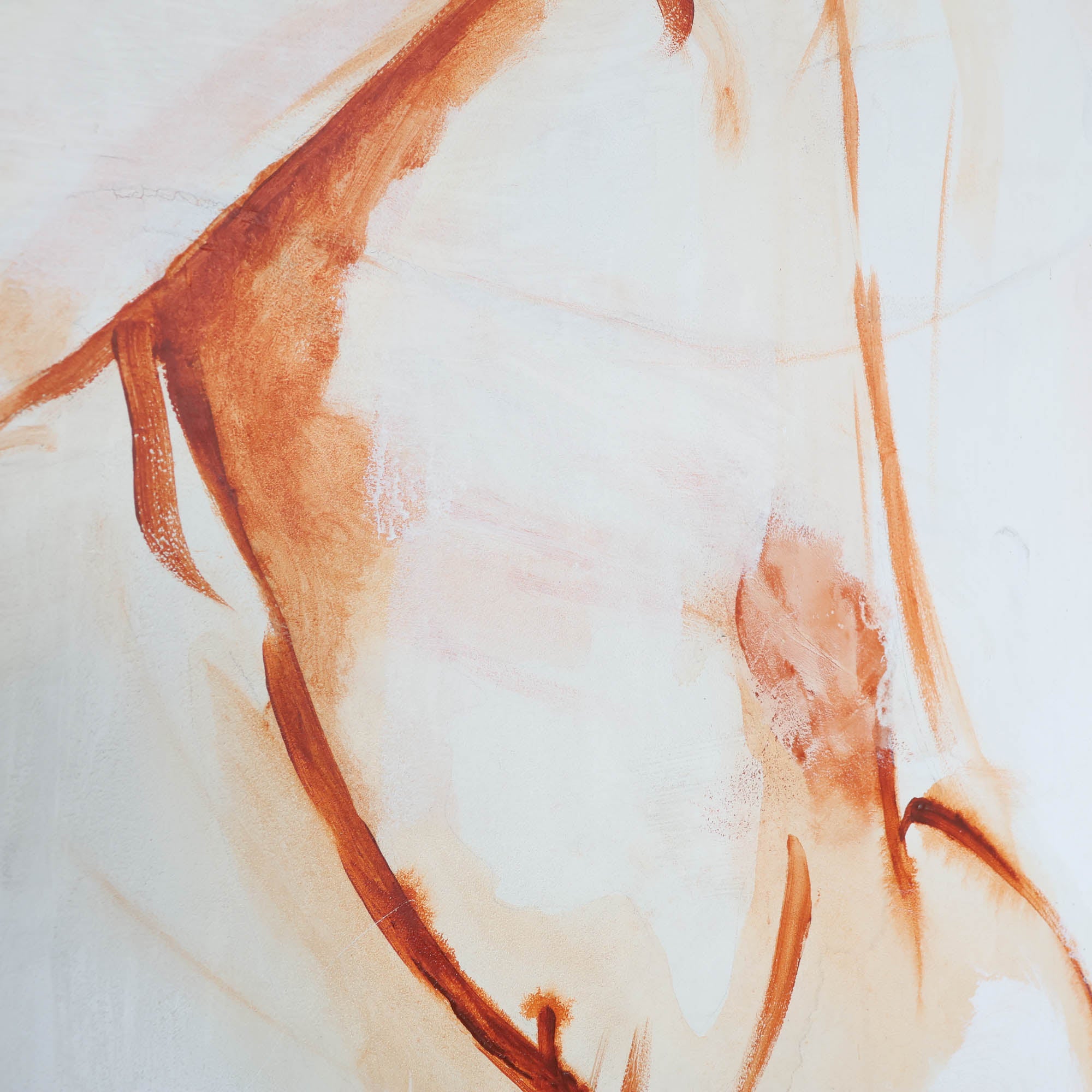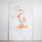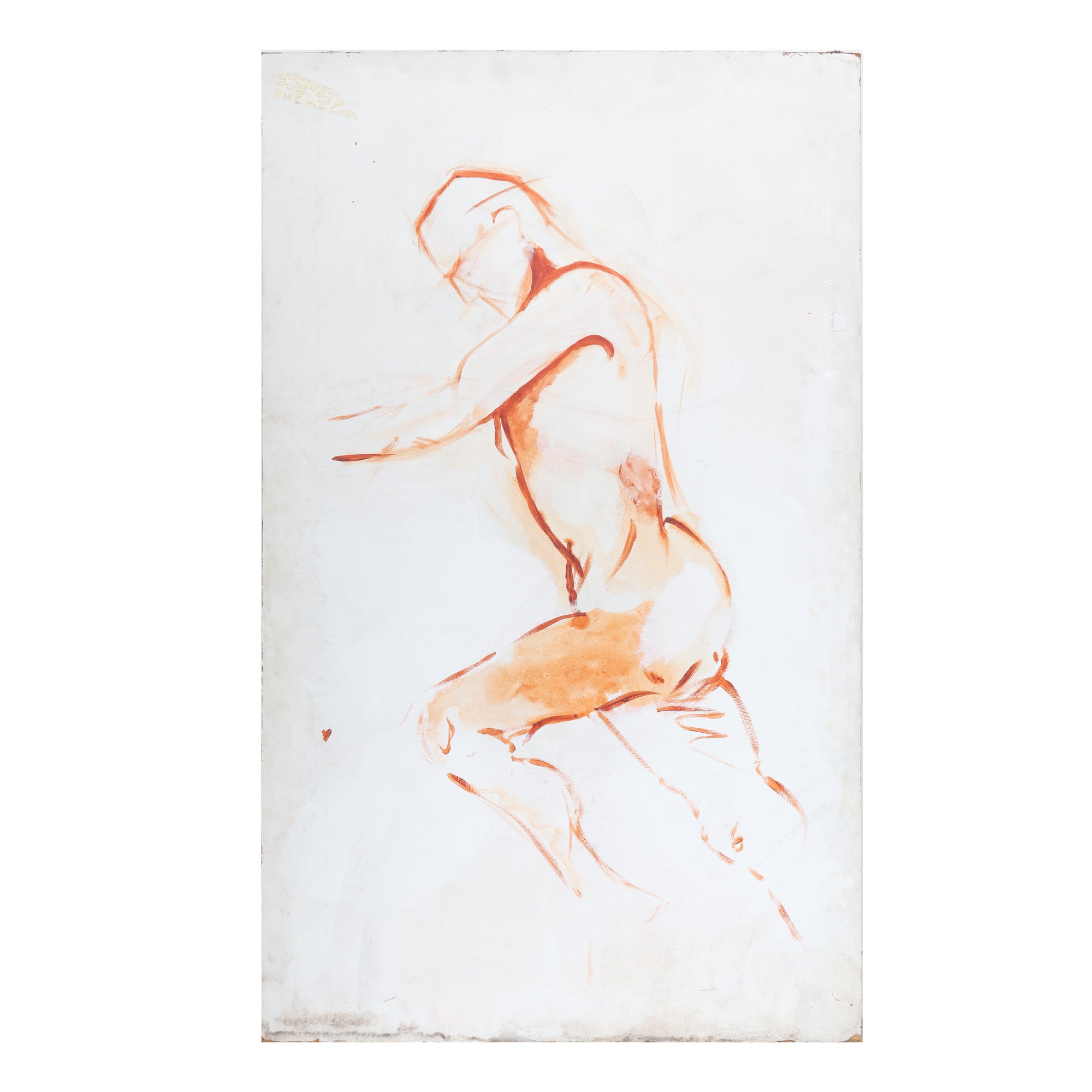 Scouted at Round Top, this large-scale male nude sketch captures the beauty of the human form in a raw, expressive style. Painted in warm sienna tones against a white backdrop, the piece plays with shadow and structure, suggesting movement and emotion with every brushstroke.