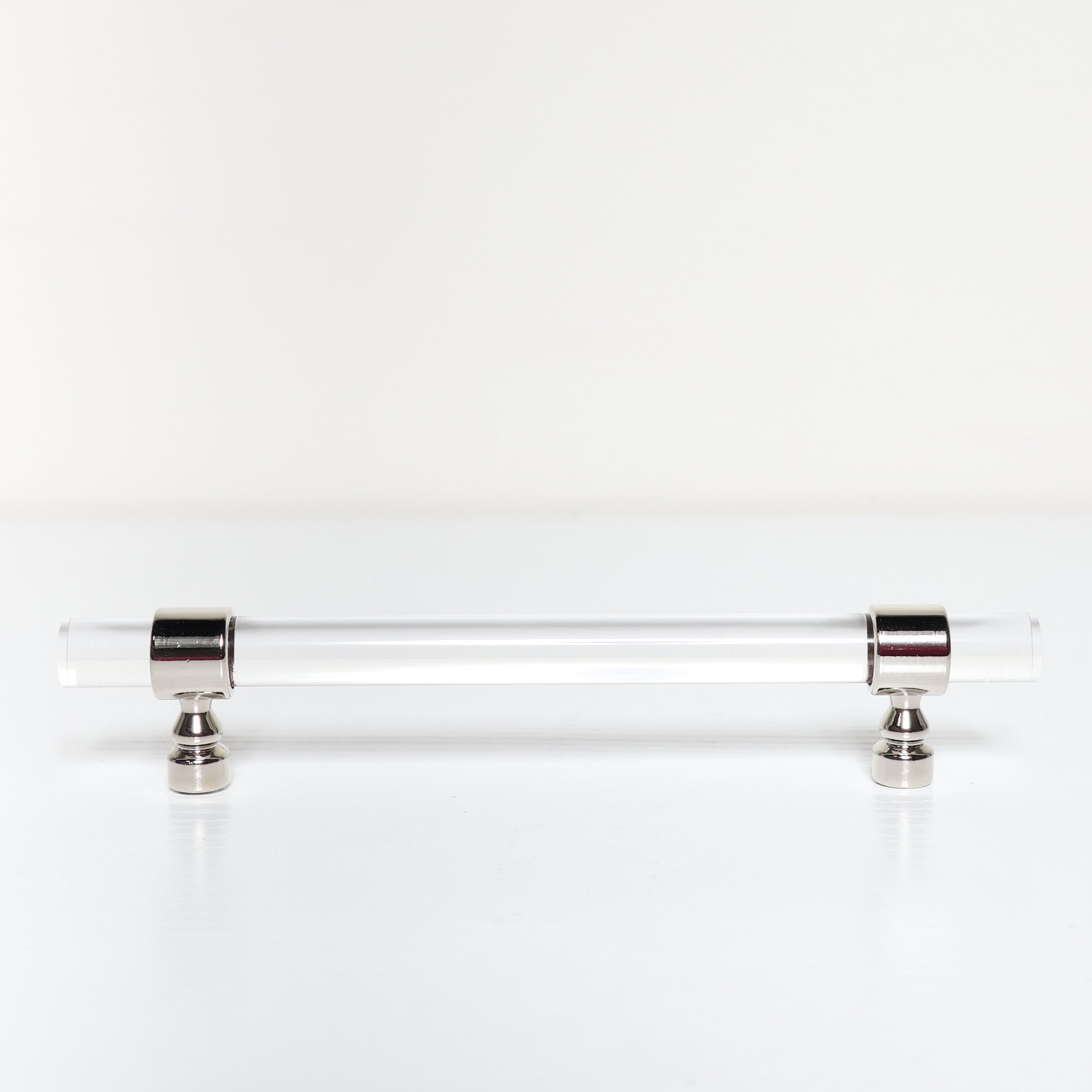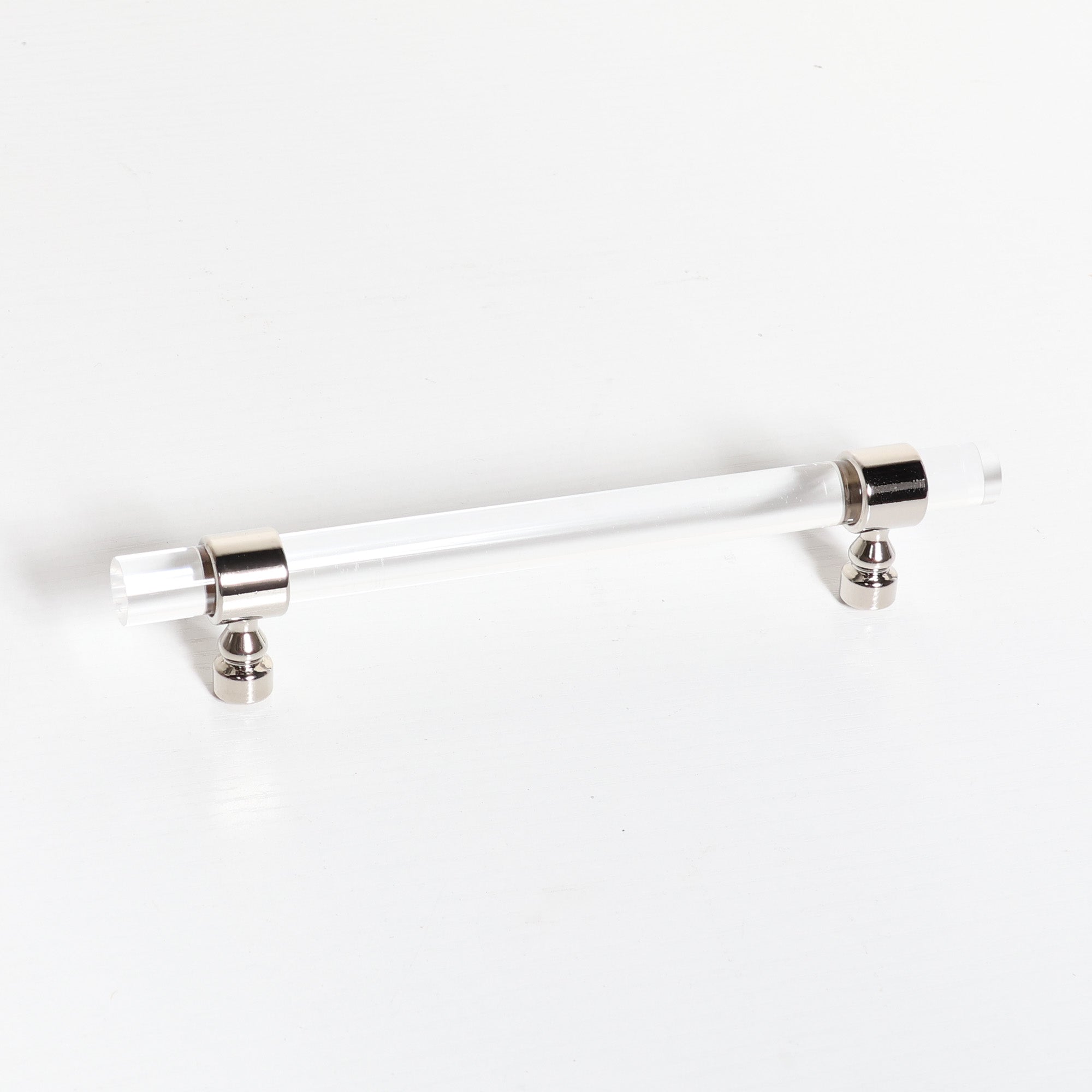 Elevate your cabinetry and furniture with this chic acrylic and polished silver handle.