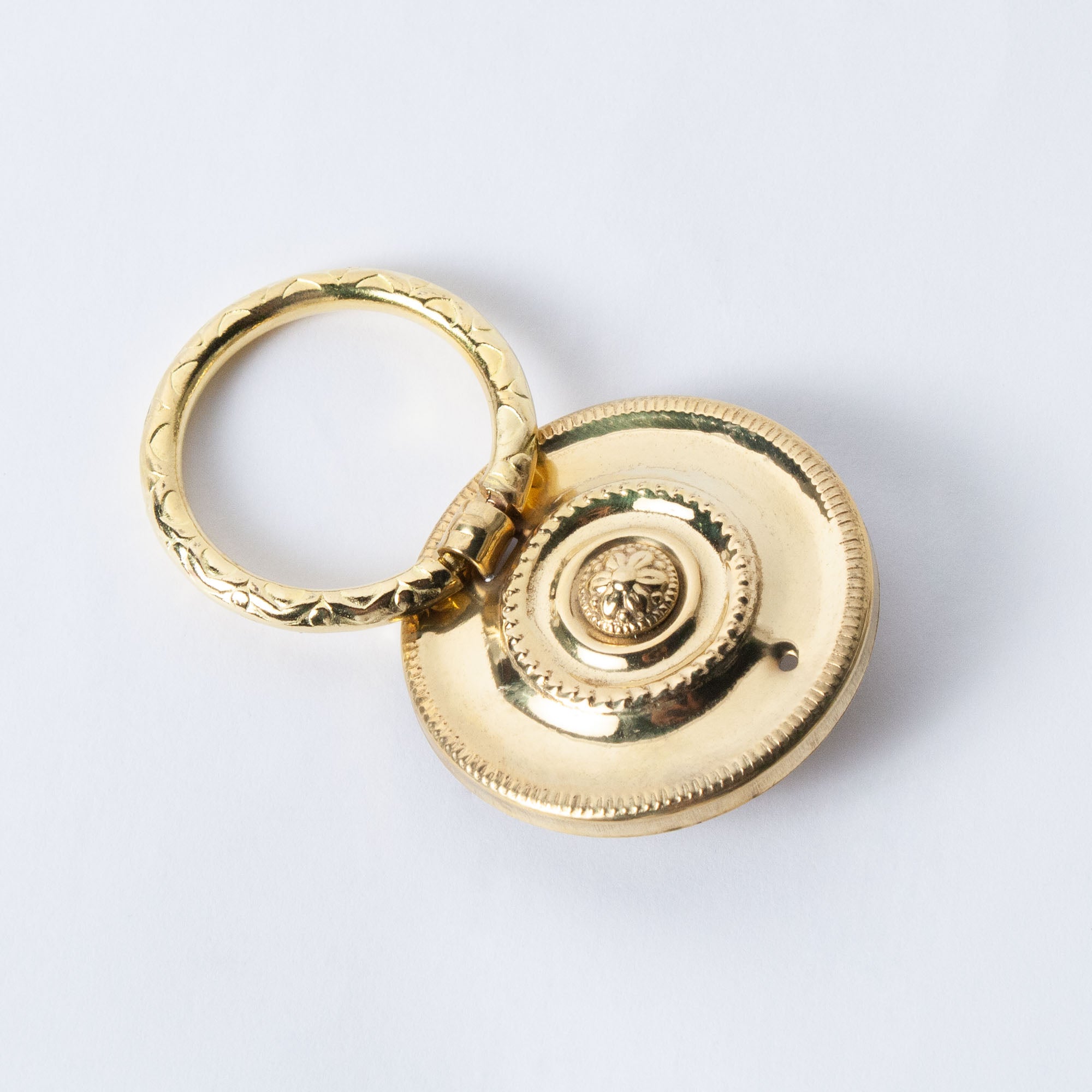 Our Bisou Hardware will steal anyone's heart. Ornate carvings adorn this ring hardware with a circular backplate.