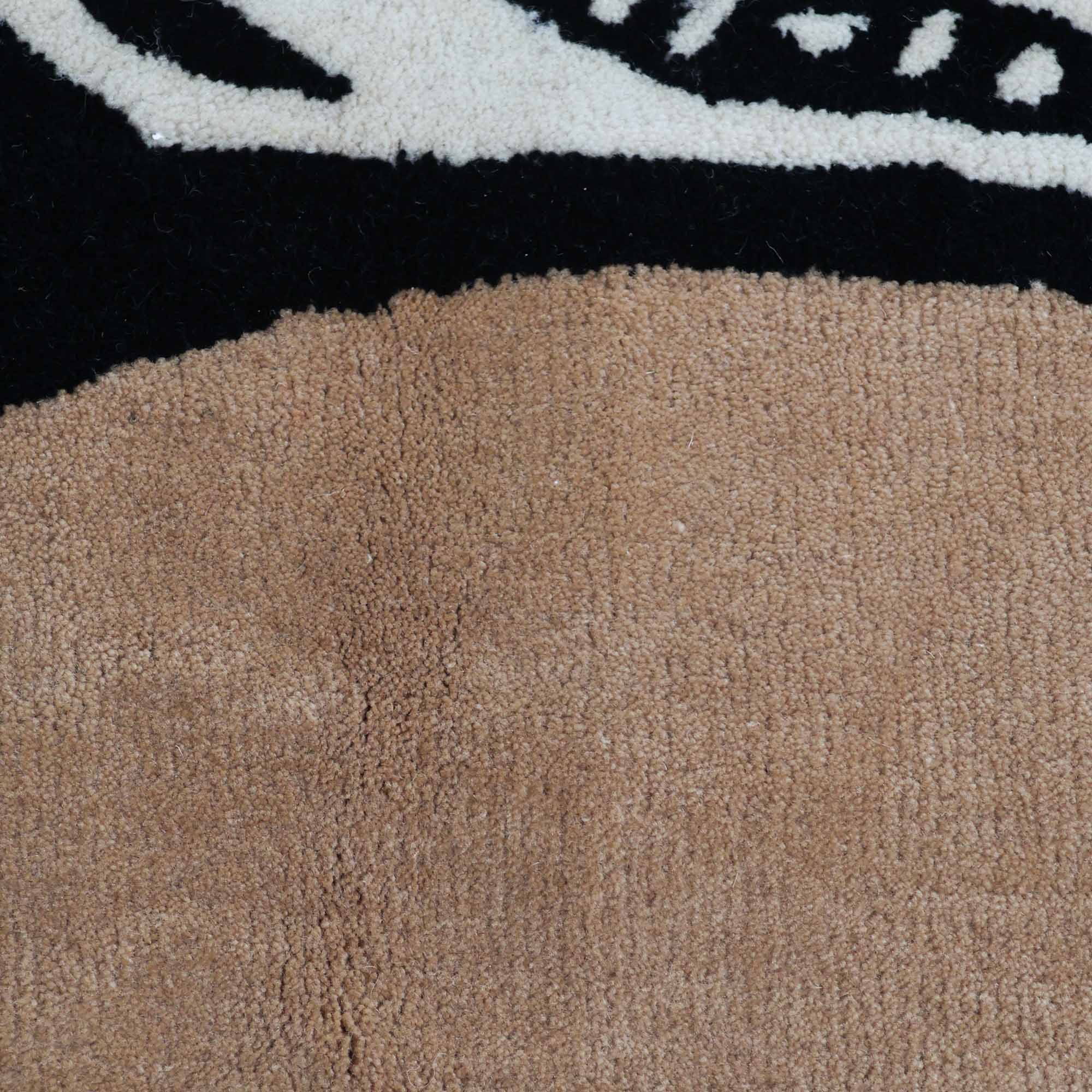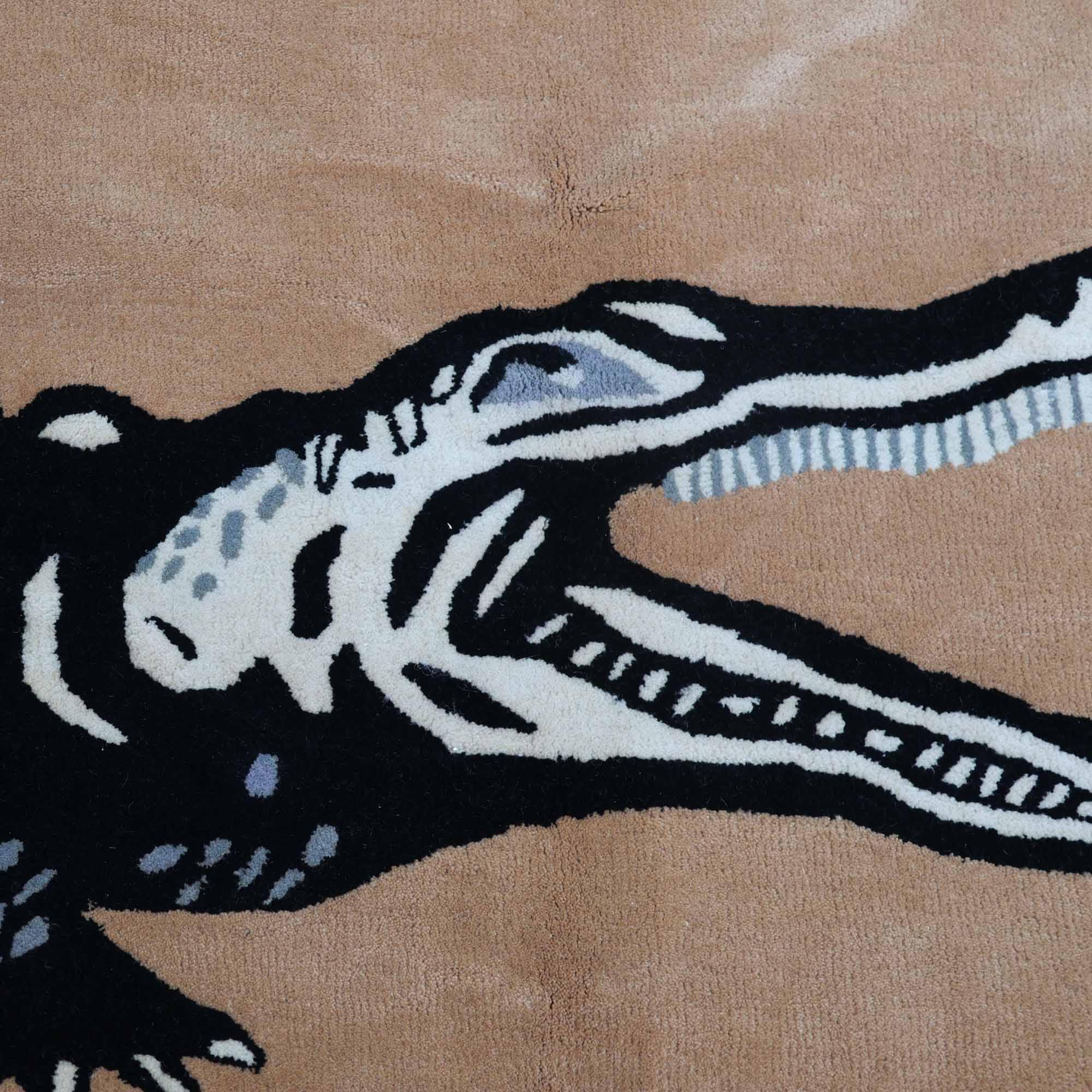 This custom rug was designed by Scout and hand-tufted by artisans in India. It features a durable wool pile that's super soft underfoot and neutral hues with an alligator design.