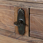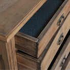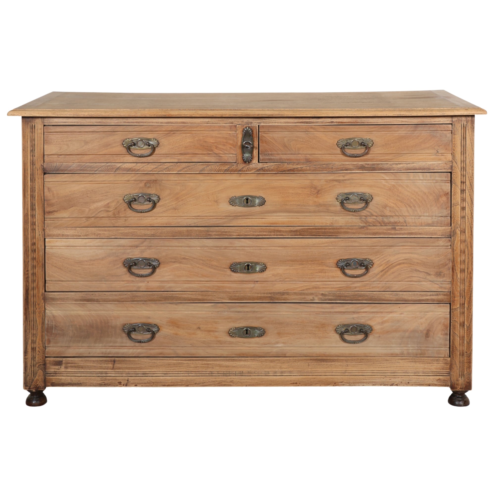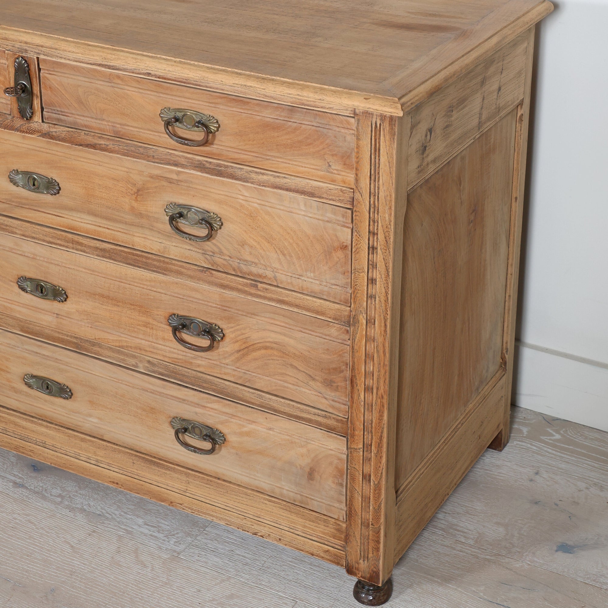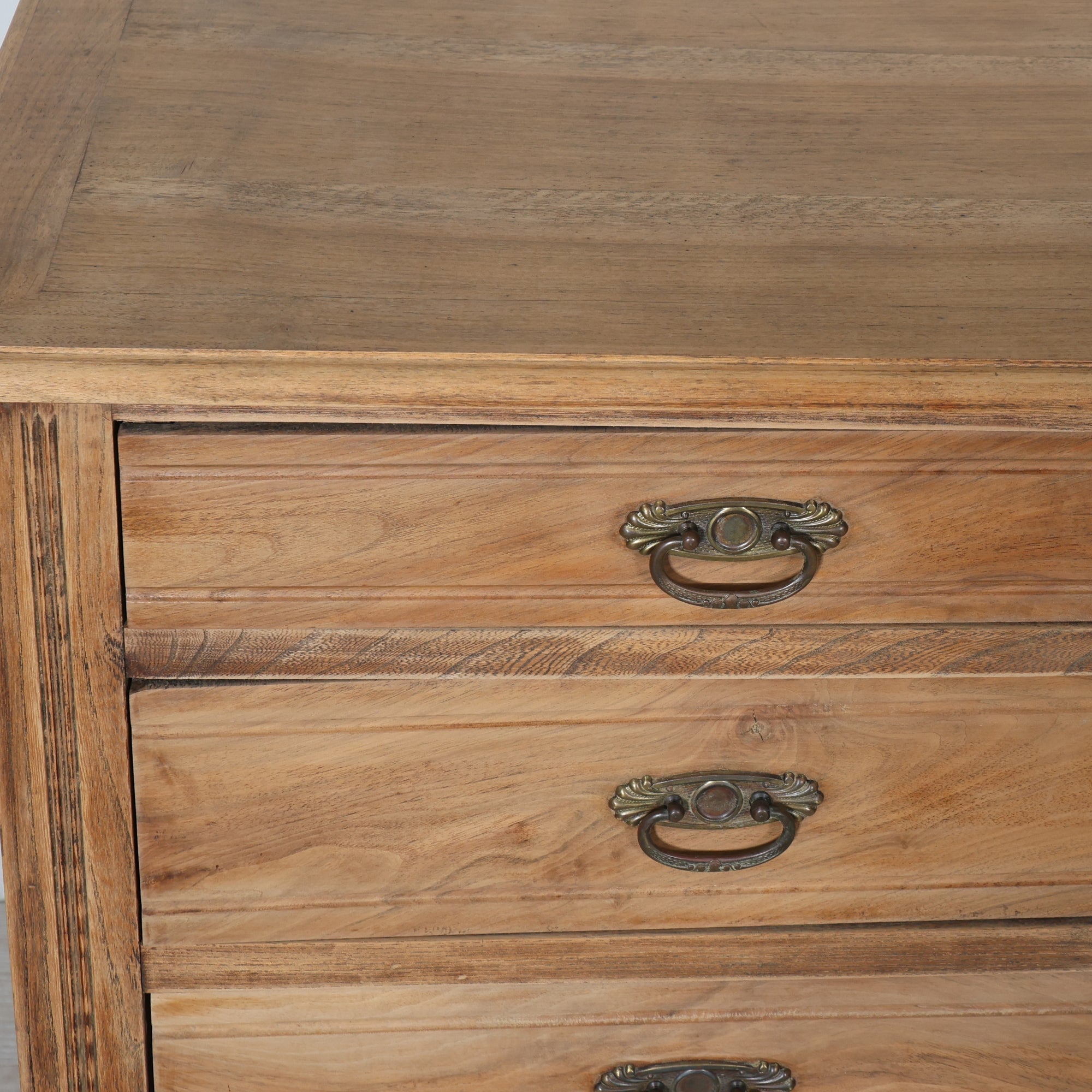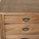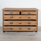 This chest of drawers has a rustic, character drenched feel. The natural oak grain paired with beautiful original brass hardware and rounded feet.