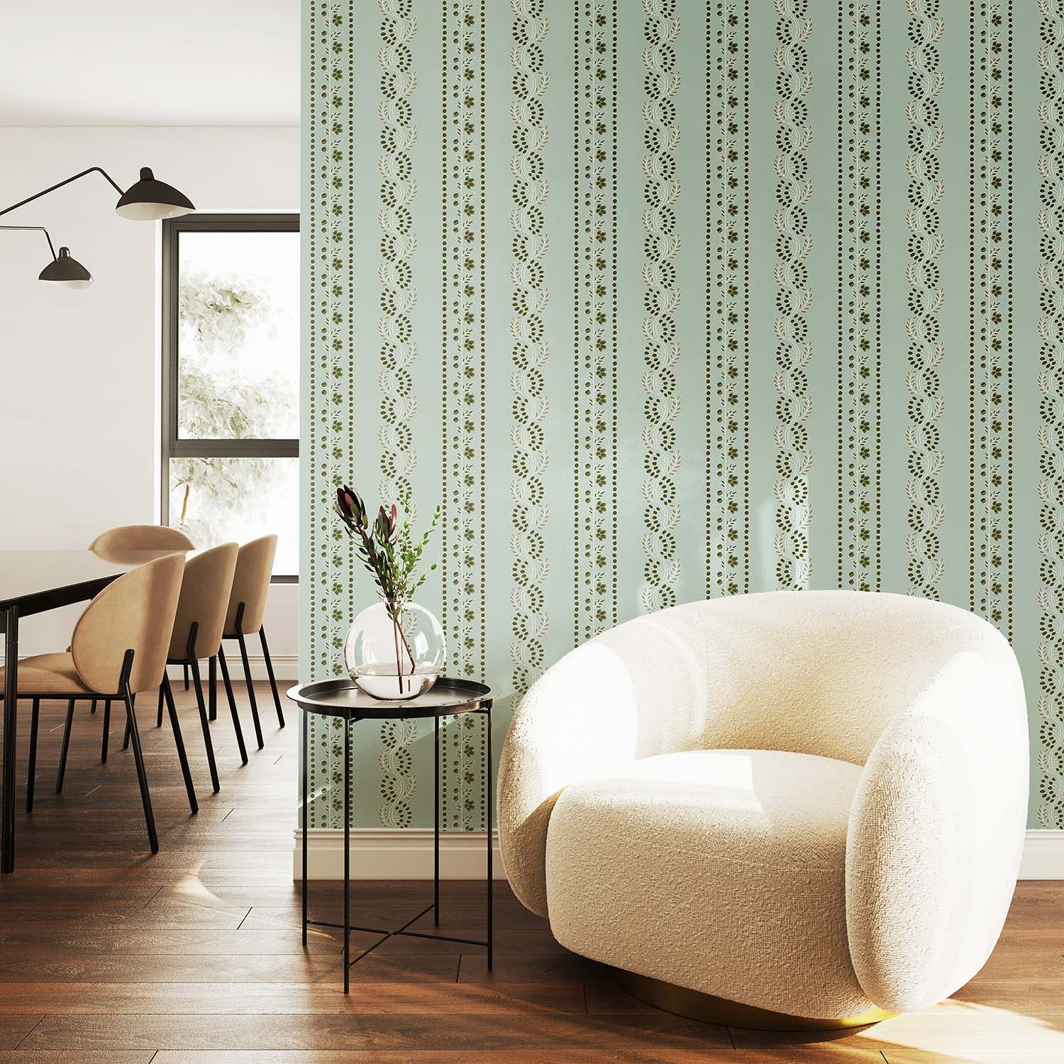 Botanic Stripe Wallpaper - Ash Blue