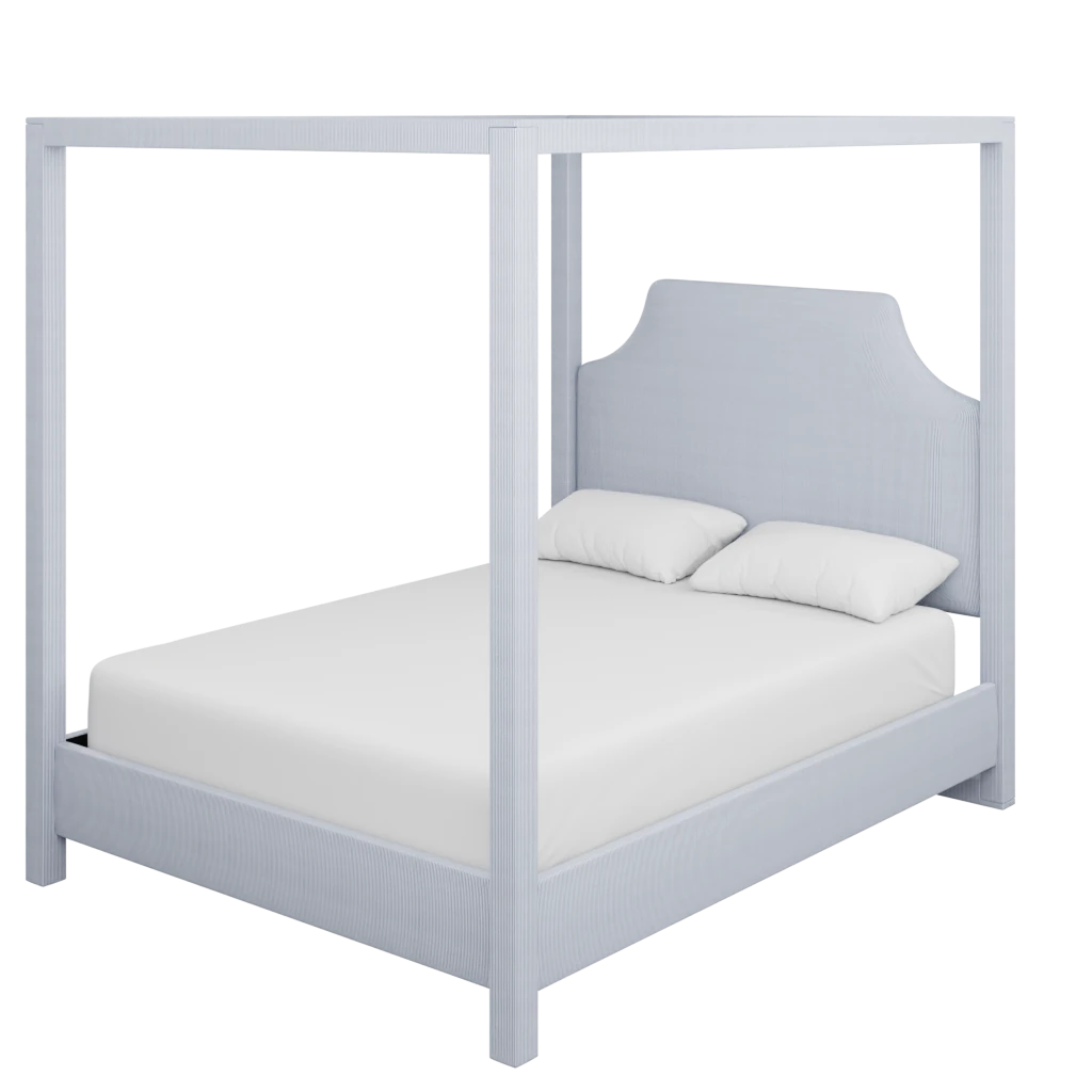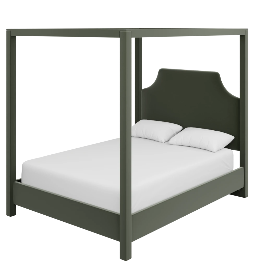 Made to order in the fabric of your choice, our custom Provence Canopy Bed features a show-stopping canopy design, accentuated by a chic headboard with inverted corners.