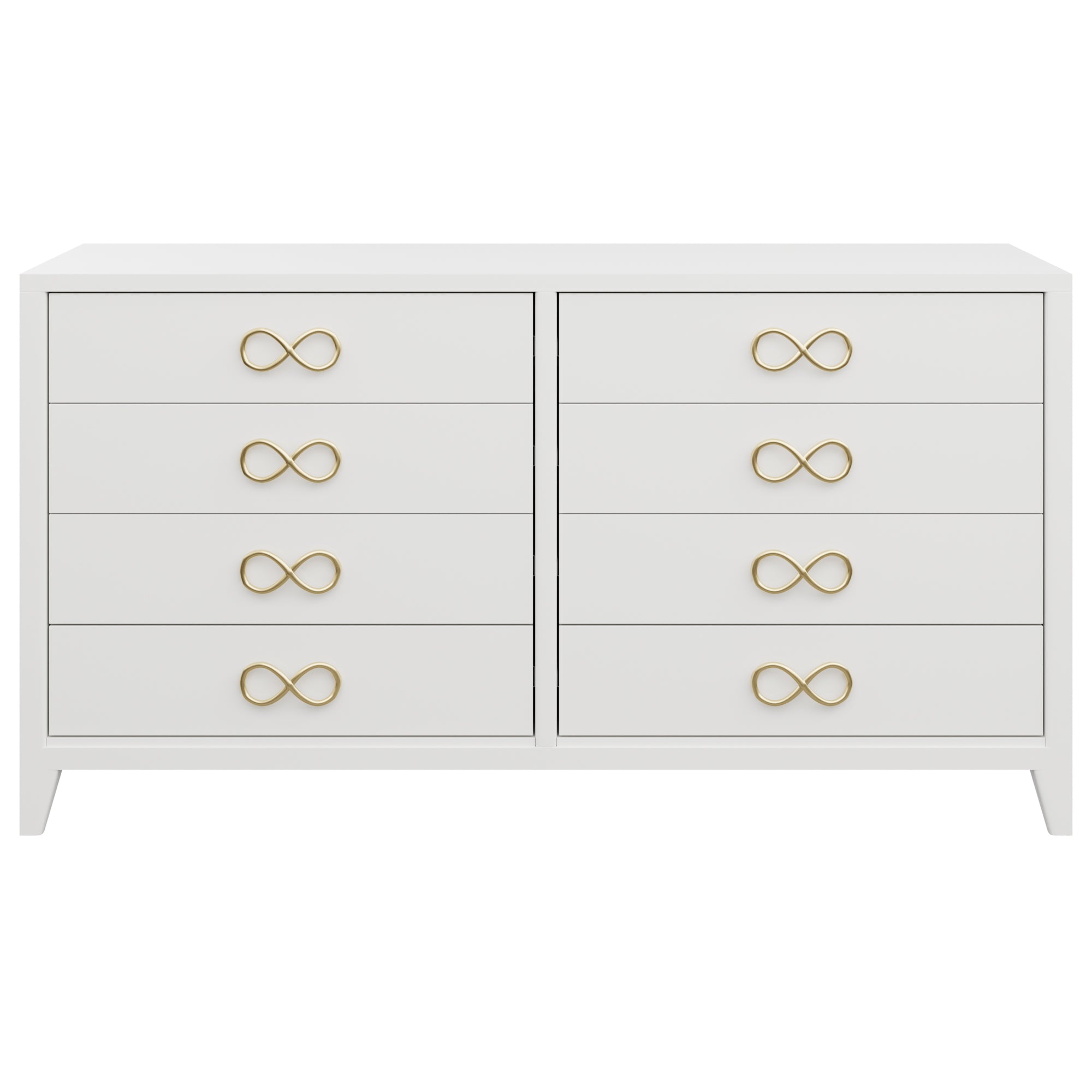 Dressed up with infinity bow hardware, this 8-drawer dresser is a simple showstopper. White lacquer in a matte finish keeps it versatile. The Magritte is perfect for a nursery, bedroom, or even the entryway.