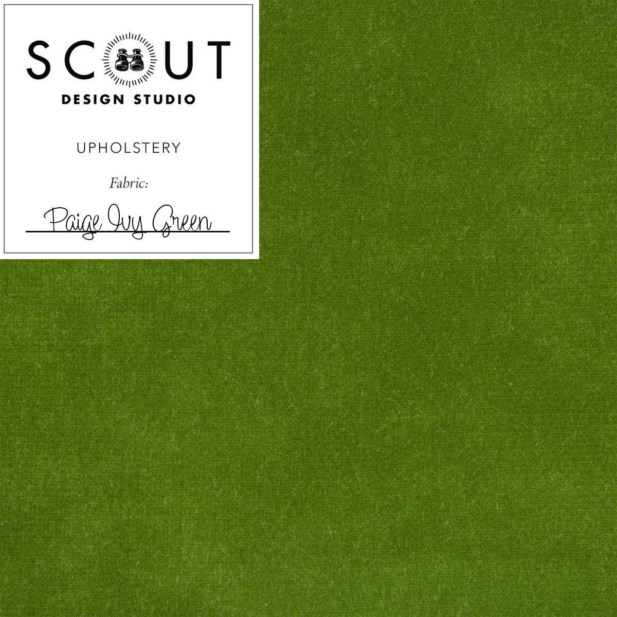 Sample of our Paige Ivy Green Velvet upholstery fabric by the yard.