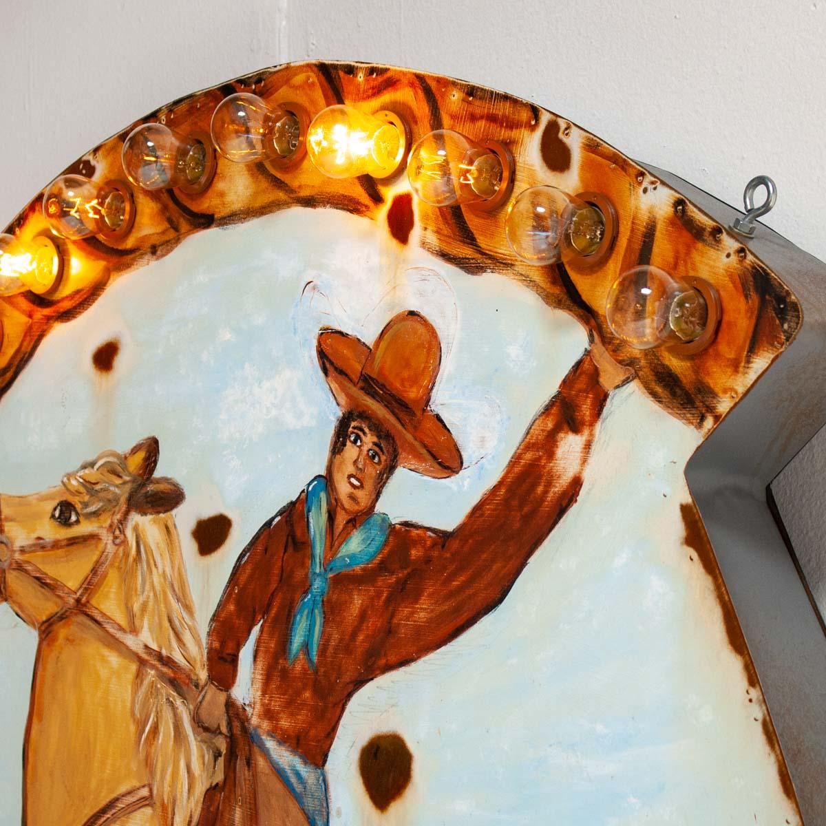 Rodeo Motel light-up sign, made to look vintage by artist Garland Murphree. Two light settings with one flashing.