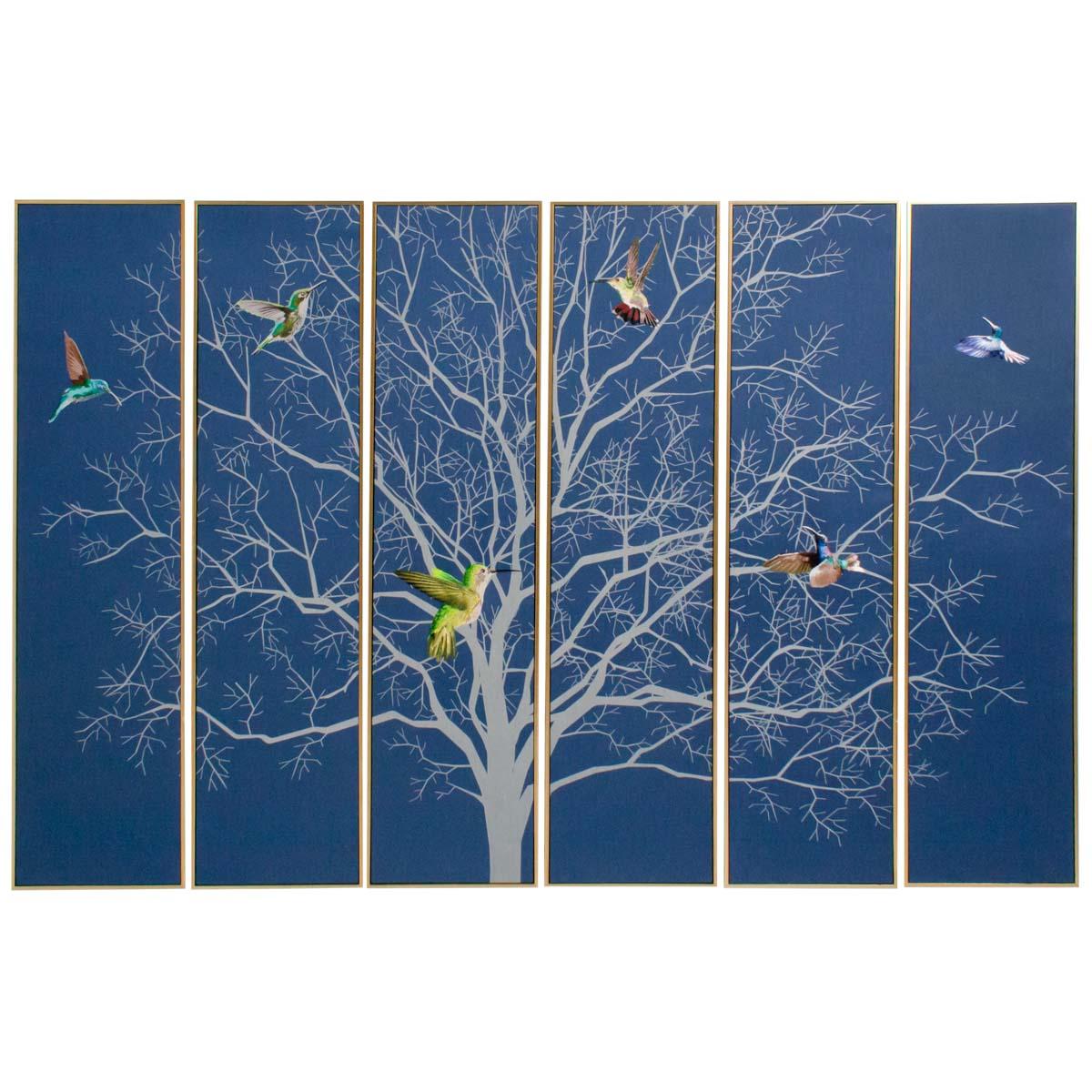 The Shel features 6 silk panels with hand-embroidered birds. The result is a beautiful shimmery three-dimensional effect.