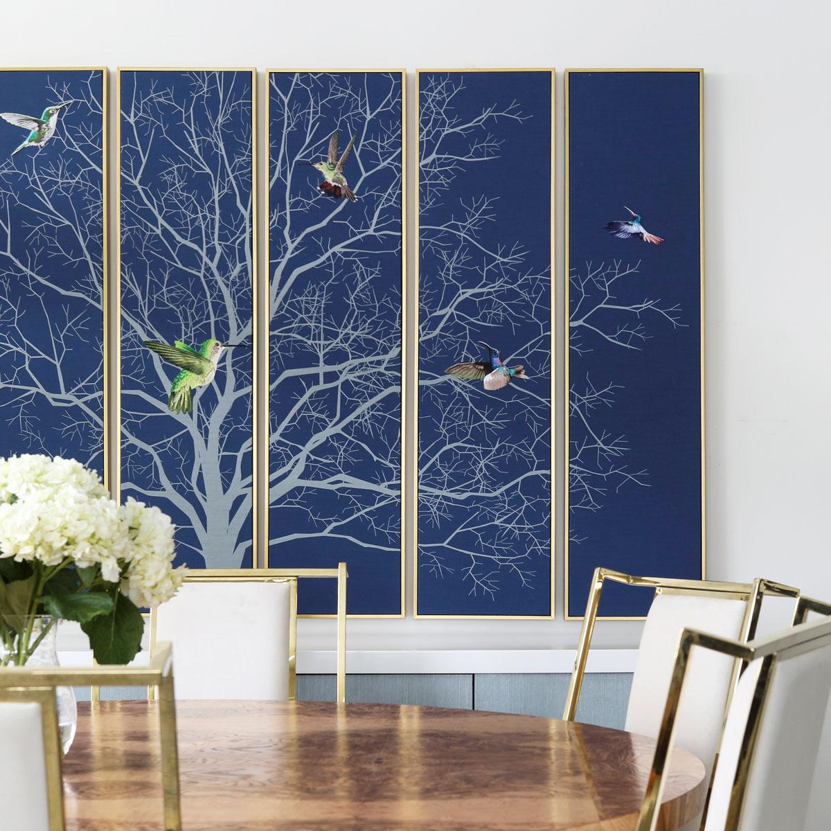 Size: Each panel is 12.5" W, 2" D, 50" H; when hung, this piece is about 80" W