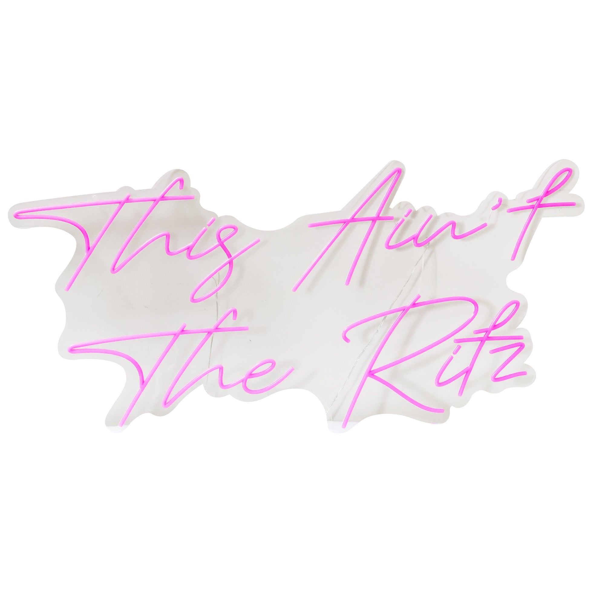 Exclusive Scout Design Studio neon sign by Tat Frederick featuring the artist's phrase 'This Ain't the Ritz'. Light up your space with a touch of fun.