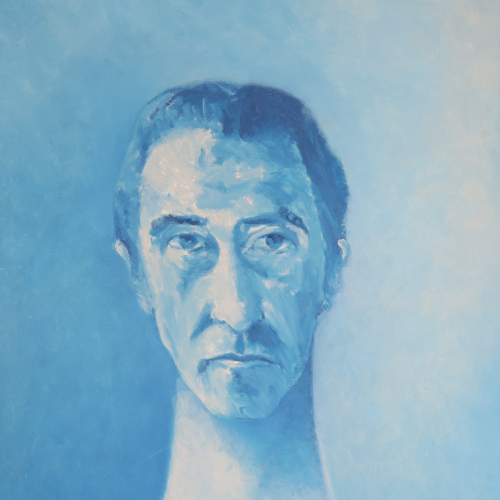 Rendered in mesmerizing shades of blue, this captivating piece captures the subject's contemplative expression, showcasing the artist's talent for conveying emotion and depth. The elongated neck and stylized features add a touch of surrealism, making this portrait both unique and timeless.