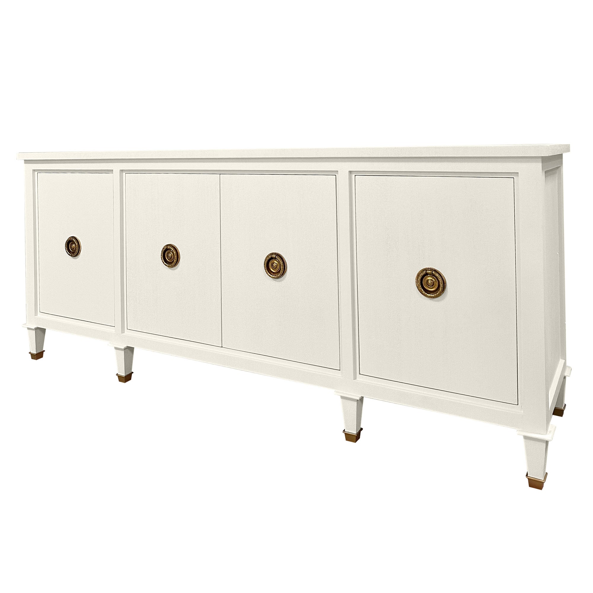 Tailored, timeless, and just the right amount of unexpected. The Watson Credenza in Cream Linen blends classic craftsmanship with a modern point of view. Dressed in a fresh, textured cream finish and accented with antique brass ring pulls, Watson is as functional as he is dashing.
