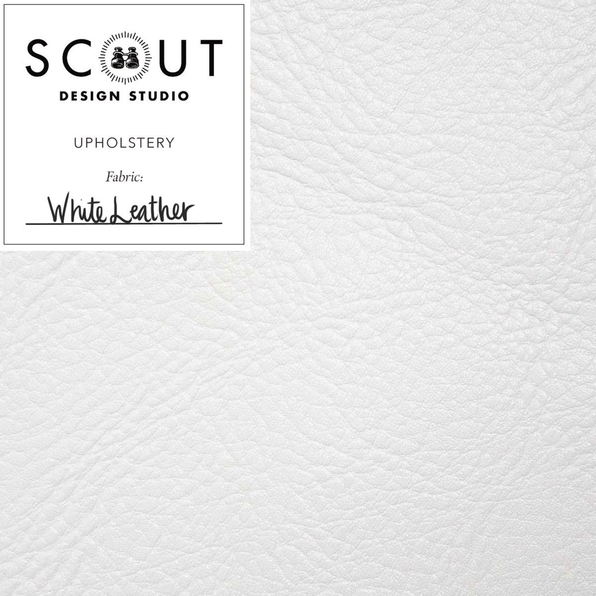 4"x6" sample of our White Leather fabric on select Scout Label items.